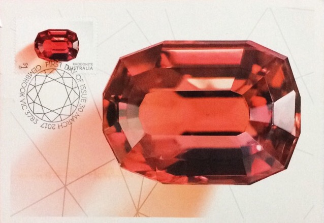 Sharon. It is a maxicard showing a rhodonite, one of her country's mineral resources.